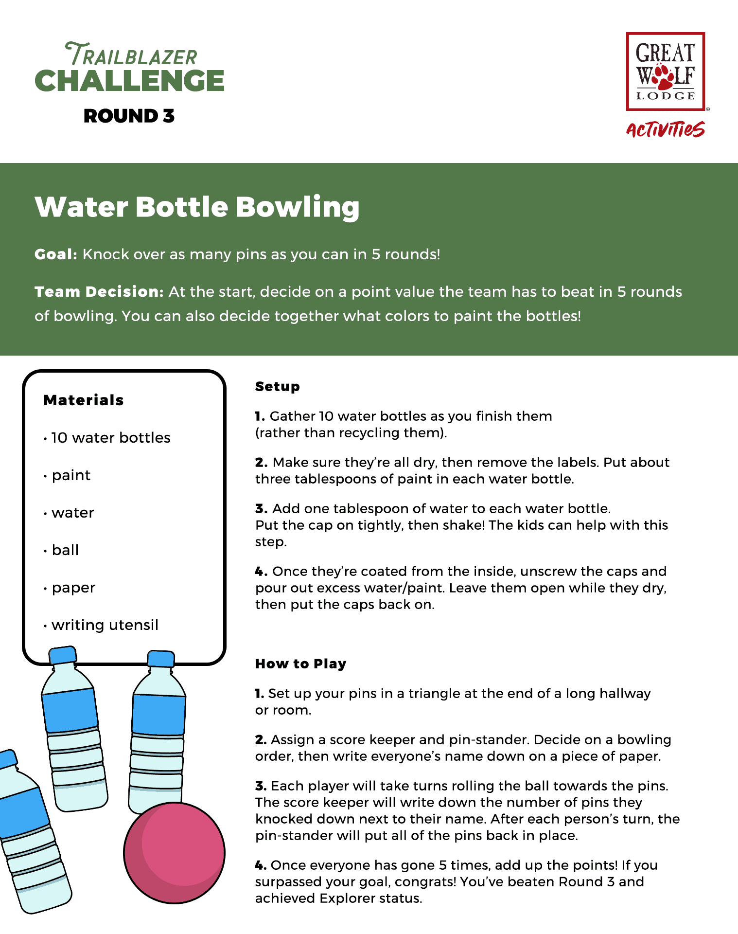 Thanks for reading about our Trailblazer Challenge! Here at Great Wolf Lodge, we create family traditions, one family at a time. These days, we’re looking to take that mission out of the lodge and into your home. Make sure to check back in with us often for more summer activities you can enjoy with the kids!