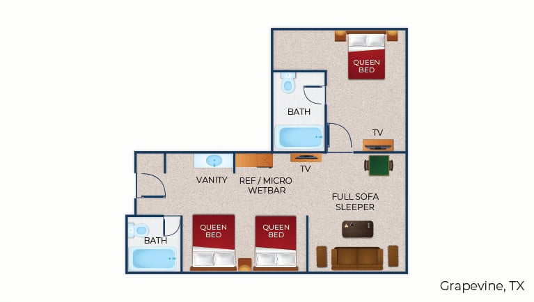 Travel in a larger pack and need a bit more space? The Grand Bear Suite comfortably sleeps up to eight people - bring along a friend or maybe even Grandma or Grandpa - there's plenty of room. The private master suite includes a queen bed, while the main area of the suite has two queen beds and a full-size sofa sleeper.