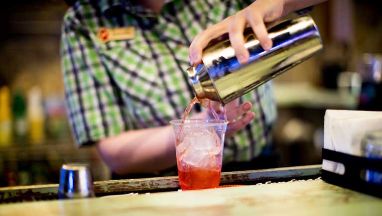 You can work up a powerful thirst in the Great Wolf Adventure Park. In between scaling the climbing wall and games of family bowling, be sure to stop by The Outpost, conveniently located within the park, for the very best in craft beers, signature cocktails, or simply a refreshing iced tea.