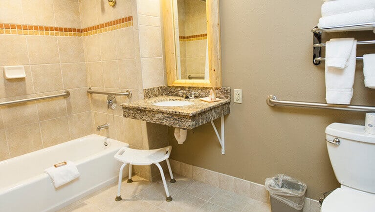 Looking for something other than the typical hotel room? The accessible Loft Fireplace Suite includes a unique lofted semi-private sleeping area complete with a queen bed while the downstairs includes two queen size beds, and a gas fireplace to enjoy.
