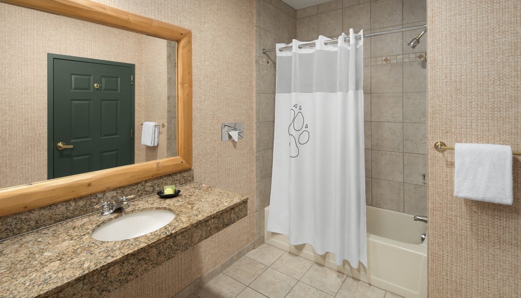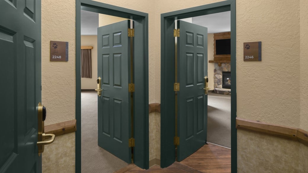 Whether you're traveling with a large family, extended family or friends and family, the Great Frontier offers space for everyone. Delight your wolf pups with a Kid Kondo of their own, with bunk beds and their own TV. Then three more private bedrooms, multiple bathrooms, a great room, two fireplaces, and a private balcony or patio set the stage for an epic vacation. Note: Bunk beds can accommodate guests up to 5.5'ft.